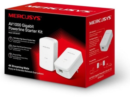 Mercusys MP500 KIT přemění vaši stávající elektrickou síť na vysokorychlostní internetovou síť bez nutnosti dalších kabelů či vrtání. Není potřeba žádné konfigurace, stačí jen zapojit adaptéry do elektrických zásuvek a okamžitě tak vytvořit síťovou infrastrukturu. Přenosová rychlost powerline je až 1000 Mbps a na obou stranách přináší 1x 10/100/1000Mbps ethernet pro připojení do switche, routeru, počítače nebo jiného zařízení s RJ45 portem.