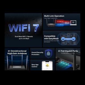 Nejnovější technologie Wi-Fi 7: Díky kanálům 160 MHz, 4K-QAM, MLO a dalším funkcím, které WiFi 7 nabízí, bude mít vaše síť ohromující výkon.