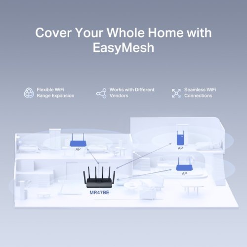 Díky Wi-Fi 7 si na MR47BE užijete plynulé streamování v rozlišení 8K, VR/AR, videokonference, on-line hraní a rychlé stahování..