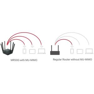 MU-MIMO technologie umožňuje routeru komunikovat s více zařízeními současně, což umožňuje připojeným zařízením dosáhnout vyšších rychlostí než standardní AC routery, což zvyšuje celkovou propustnost sítě.