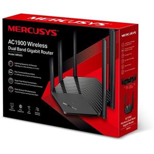 Mercusys MR50G je moderní designový router s hexagonovou základnou s 6 fixními anténami se ziskem 5dBi, dvěmi Gigabitovými LAN a jedním Gigabitovým WAN portem. V bezdrátové části jsou 2 rádia, která jsou obě 3x3 MIMO, podporují MU-MIMO a mají modulační rychlosti 600Mbps (2.4GHz) a 1300Mbps (5GHz). Co do softwarové výbavy, router kromě standardního režimu AP Router podporuje i mód Access Point. Router má plnou podporu nejnovějšího routovacího protokolu IPv6.