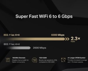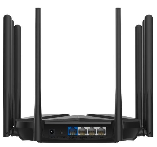Bezdrátový router od výrobce Mercusys představuje vysoce výkonný Dual Band Wi-Fi 6 router, specificky koncipovaný pro domácí využití a vysokou rychlost. S implementací Dual Band Wi-Fi 6, podporou standardů 802.11a/b/g/n/ac/ax a technologií 4x4 MIMO nabízí přenosovou rychlost 4804 Mbps v pásmu 5 GHz a 1148 Mbps v pásmu 2.4 GHz. Díky osmi statickým anténám a využití pokročilých technologií, jako jsou OFDMA, MU-MIMO, šifrování WPA3 a Beamforming, zaručuje stabilní a zabezpečené připojení. Router rovněž poskytuje podporu VPN protokolů OpenVPN a PPTP, což výrazně přispívá k celkové bezpečnosti připojení. Router disponuje (2) Gigabit LAN + (1) Gigabit LAN/WAN + (1) 2.5 - Gigabit WAN porty, čímž uspokojí požadavky na vysokorychlostní přenos dat. Router má nádherný moderní design, a proto se řadí mezi optimální volby pro moderní domácnosti.