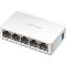 OBSAH BALENÍ 5portový 10/100 Mbps stolní switch MERCUSYS MS105, napájecí adaptér, rychlá instalační příručka