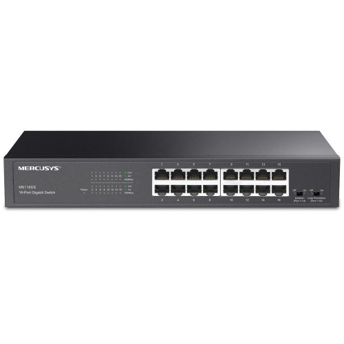 Plně gigabitové porty: 16× 10/100/1000 Mb/s port RJ45 s automatickým vyjednáváním a podporou Auto-MDI/MDIX.