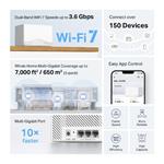 Pomocí routeru TP-Link Mercusys Halo H25BE nerušeně streamujete ve 4K/8K kvalitě a plynule hrajete AR/VR hry s rychlostí až 3,6 Gb/s (2 880 Mb/s v pásmu 5 GHz a 688 Mb/s v pásmu 2,4 GHz). Technologie WiFi 7 totiž posune výkon vašeho domácího připojení na další úroveň. V balení najdete 2 jednotky, které vám zajistí spolehlivé pokrytí (až 460 m2).