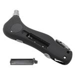 Tělo měřiče je ergonomicky tvarované pro pevný a pohodlný úchop, takže využití všech bezpečnostní doplňků je maximálně efektivní. Měřič Compass SAFETY TOOL je vybaven vystřelovacím kladívkem na rozbití skla, krytým nožem pro snadné přeříznutí bezpečnostního pásu, LED svítilnou s bílým světlem a svítilnou s červeným světlem.