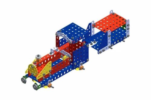 Klasická jednovrstvá stavebnice Merkur 32 – železniční modely. Stavebnice obsahuje součástky potřebné pro stavbu modelů vlaků. Součástí stavebnice je návodová knížka s návodem na stavbu 10 různých modelů. Tato jedinečná sada je ideálním nástrojem pro rozvoj technických dovedností a představivosti dětí. Stavebnice obsahuje kvalitní kovové díly, které se snadno spojují šroubky, což podporuje rozvoj jemné motoriky, logického myšlení a soustředění. Počet dílků: 300. Úroveň Merkur obtížnosti: 3. Barvy, velikost a vzhled výrobku se mohou lišit oproti uvedeným fotografiím. Baleno v krabičce. Rozměry balení: 26 x 36 x 3 cm. Nevhodné pro děti mladší 3 let. Věk: 5+