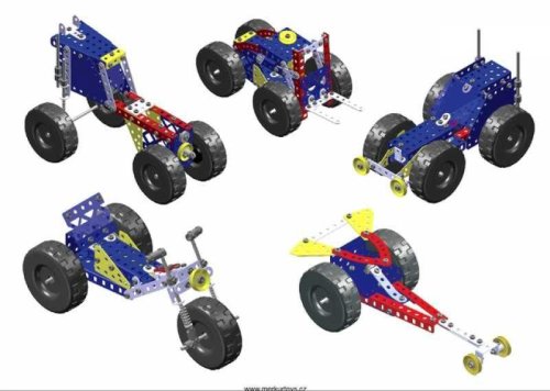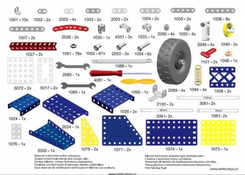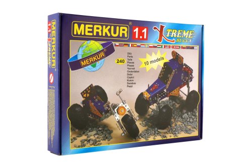 Chcete si postavit vlastní terénní vozidla, která dokážou překonávat různé překážky, a to s lehkostí sobě vlastní? S touto speciální stavebnicí máte jedinečnou šanci! Právě v této stavebnici byly totiž poprvé použity speciální pružiny k odpružení kol, díky kterým váš model překoná téměř vše, co se mu postaví do cesty. Vyzkoušejte si svou zručnost a v zápalu hry se přesvědčte o tom, s jakou lehkostí se vámi postavené modely vypořádají s překážkami. Se stavebnicí Merkur 1.1. můžete sestavit až 10 různých modelů vozidel. Stavebnice obsahuje 256 dílků včetně návodu a nářadí. Vhodné i pro děti, které s Merkurem začínají. Se sestavenými modely si lze hrát, jsou velmi odolné. Rozměr balení: 26,5 x 36 x 5,5 cm. Nevhodné pro děti mladší 3 let. Věk: 5+