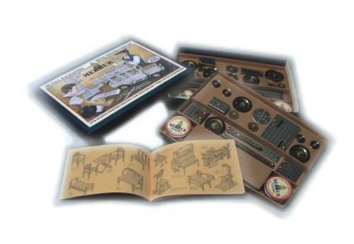 Jedná se o exkluzivní stavebnici, která je replikou podobných stavebnic ze začátku minulého století. Veškeré součástky jsou z tradičních materiálů a v barvách jako je zinek, patina či bezbarvý lak. Neobsahuje klasický návod, pouze knihu předloh. Tato jedinečná sada je ideálním nástrojem pro rozvoj technických dovedností a představivosti dětí. Stavebnice obsahuje kvalitní kovové díly, které se snadno spojují šroubky, což podporuje rozvoj jemné motoriky, logického myšlení a soustředění. Počet dílků: 929. Úroveň Merkur obtížnosti: 3. Barvy, velikost a vzhled výrobku se mohou lišit oproti uvedeným fotografiím. Baleno v krabičce. Rozměry balení: 29 x 38 x 5 cm. Nevhodné pro děti mladší 3 let. Věk: 6+