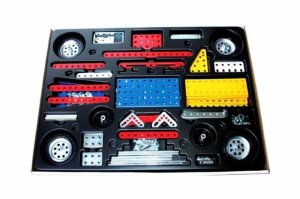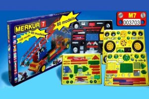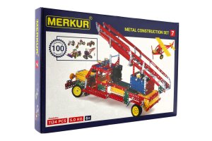 Velká čtyřvrstvá klasická stavebnice Merkur 7 – velký set. Stavebnice obsahuje mimo základní sestavu dílů také součástky nutné pro stavbu velkého požárního auta, velkých jeřábů a dalších modelů. Součástí stavebnice je velká návodová knížka s návodem na stavbu 100 modelů. Tato jedinečná sada je ideálním nástrojem pro rozvoj technických dovedností a představivosti dětí. Stavebnice obsahuje kvalitní kovové díly, které se snadno spojují šroubky, což podporuje rozvoj jemné motoriky, logického myšlení a soustředění. Počet dílků: 1335. Úroveň Merkur obtížnosti: 4. Rozměry balení: 36 x 54 x 6 cm. Nevhodné pro děti mladší 3 let. Věk: 7+