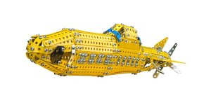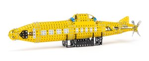 Vstupte se do světa kreativity a zábavy se stavebnicí Merkur Ponorka. Tato jedinečná sada je ideálním nástrojem pro rozvoj technických dovedností a představivosti dětí. Díky kovovým dílkům si malí stavitelé mohou sestavit model ponorky i s podstavcem. Prostorný a náročný model o délce 55 cm je skvělou výzvou pro stavitele, kteří milují detailní a precizní práci. Stavebnice obsahuje kvalitní kovové díly, které se snadno spojují šroubky, což podporuje rozvoj jemné motoriky, logického myšlení a soustředění. Sada obsahuje: 654 dílků. Úroveň Merkur obtížnosti: 4. Baleno v krabičce. Rozměry modelu: 36 x 27 x 55 cm. Rozměry balení: 27 x 36 x 5,5 cm. Nevhodné pro děti do 3 let. Věk: 7+