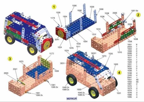 Merkur díly jsou univerzální a tak vás neomezí v jakékoli modifikaci a nápadu Stavebnici tak můžete sestavit podle přiloženého návodu nebo čistě podle svých představ Se sestavenými modely si lze hrát, jsou velmi odolné Podporuje a rozvíjí manuální schopnosti, logické myšlení, soustředění