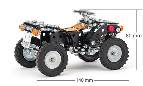 Ponořte se do světa kreativity a zábavy se stavebnicí Čtyřkolka od společnosti Merkur. Tato jedinečná sada je ideálním nástrojem pro rozvoj technických dovedností a představivosti dětí. Díky kovovým dílkům si malí stavitelé mohou postavit čtyřkolku. Stavebnice obsahuje kvalitní kovové díly, které se snadno spojují šroubky, což podporuje rozvoj jemné motoriky, logického myšlení a soustředění. Sada obsahuje: 236 dílků. Úroveň Merkur obtížnosti: 3. Baleno v krabičce. Rozměry čtyřkolky: 8 x 7,5 x 14 cm. Rozměry balení: 18 x 26 x 5 cm. Věk: 5+