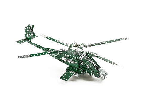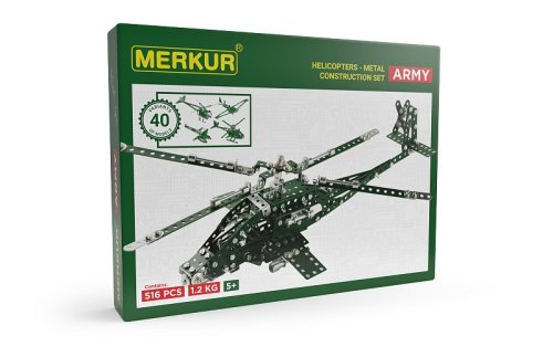 Dvouvrstvá stavebnice Merkur Helikopter Set je ideální pro všechny, kteří se chtějí ponořit do válečné atmosféry a vyzkoušet si stavbu bojového vrtulníku. Ať už podle vlastní fantazie, nebo dle vyobrazených návodů, kterých je v přiložené knížce 40. Tato jedinečná sada je ideálním nástrojem pro rozvoj technických dovedností a představivosti dětí. Stavebnice obsahuje kvalitní kovové díly, které se snadno spojují šroubky, což podporuje rozvoj jemné motoriky, logického myšlení a soustředění. Sada obsahuje: 516 dílků. Úroveň Merkur obtížnosti: 3. Baleno v krabičce. Rozměry balení: 27 x 36 x 5,5 cm. Věk: 5+