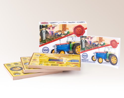Merkur M2020 Výroční stavebnice obsahuje 753 jednotlivých součástek a možnost stavby mnoha modelů Součástí stavebnice je velká návodová knížka s návodem na stavbu 100 různých modelů