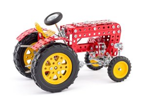 Ponořte se do světa kreativity a zábavy se stavebnicí Retrotraktor od společnosti Merkur. Červený Retrotraktor s funkčním řízením a pohyblivou přední osou přivádí na mysl staré dobré časy na statku. Pro všechny, kdo mají rádi klasiku a nostalgii zemědělských strojů. Tato jedinečná sada je ideálním nástrojem pro rozvoj technických dovedností a představivosti dětí. Díky kovovým dílkům si malí stavitelé mohou postavit model vozu. Stavebnice obsahuje kvalitní kovové díly, které se snadno spojují šroubky, což podporuje rozvoj jemné motoriky, logického myšlení a soustředění. Sada obsahuje: 333 dílků. Úroveň Merkur obtížnosti: 3. Baleno v krabičce. Rozměry modelu: 13, 5 x 11 x 21 cm. Rozměry balení: 23 x 33,5 x 5,7 cm. Věk: 5+