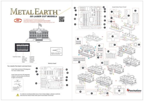 Jednotlivé díly vyjměte z kovových plátků, v případě potřeby použijte malé štípací nůžky (nejsou součástí). Dílky se spojují k sobě pomocí zámků tvořených úchytem (zobáčkem) a otvorem. Zobáček ohněte pomocí malých tenkých kleští (nejsou součástí) a postupně spojte všechny zámky až vznikne velmi realistický mistrovský kousek!