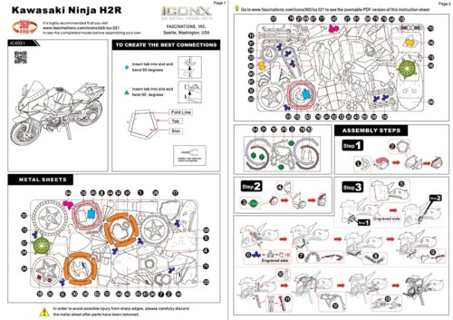 Jednotlivé díly vyjměte z kovových plátků, v případě potřeby použijte malé štípací nůžky (nejsou součástí). Dílky se spojují k sobě pomocí zámků tvořených úchytem (zobáčkem) a otvorem. Zobáček ohněte pomocí malých tenkých kleští (nejsou součástí) a postupně spojte všechny zámky až vznikne velmi realistický mistrovský kousek!