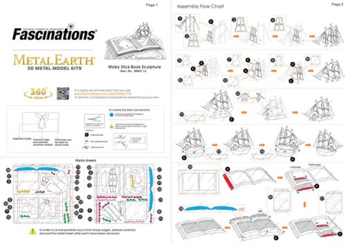 Jednotlivé díly vyjměte z kovových plátků, v případě potřeby použijte malé štípací nůžky (nejsou součástí). Dílky se spojují k sobě pomocí zámků tvořených úchytem (zobáčkem) a otvorem. Zobáček ohněte pomocí malých tenkých kleští (nejsou součástí) a postupně spojte všechny zámky až vznikne velmi realistický mistrovský kousek!