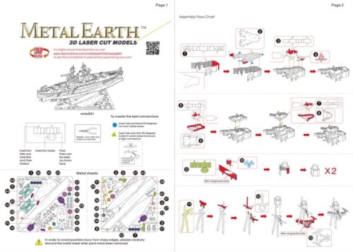 Jednotlivé díly vyjměte z kovových plátků, v případě potřeby použijte malé štípací nůžky (nejsou součástí). Dílky se spojují k sobě pomocí zámků tvořených úchytem (zobáčkem) a otvorem. Zobáček ohněte pomocí malých tenkých kleští (nejsou součástí) a postupně spojte všechny zámky až vznikne velmi realistický mistrovský kousek!
