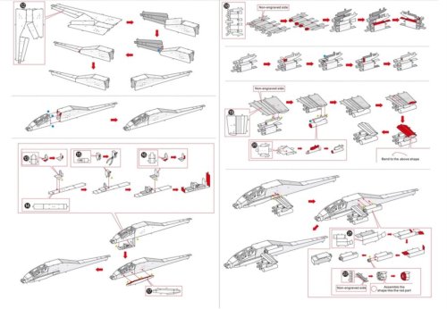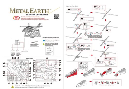Jednotlivé díly vyjměte z kovových plátků, v případě potřeby použijte malé štípací nůžky (nejsou součástí). Dílky se spojují k sobě pomocí zámků tvořených úchytem (zobáčkem) a otvorem. Zobáček ohněte pomocí malých tenkých kleští (nejsou součástí) a postupně spojte všechny zámky až vznikne velmi realistický mistrovský kousek!