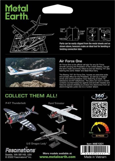 Sada pro vytvoření fascinujícího kovového 3D modelu . Stavba puzzle METAL EARTH vyžaduje trpělivost a šikovné ruce. Výsledek práce však plně vyváží vynaložené úsilí. Miniaturní repliky jsou působivou a poutavou dekorací. Z čtvercových plátků oceli Vám pod rukama vyrostou detailně propracované, fascinující modely. Autentický vzhled 3D puzzle METAL EARTH je dosažen díky detailnímu laserovému gravírování . Nářadí není součástí balení. PRACOVNÍ POSTUP: Jednotlivé díly vyjměte z kovových plátků, v případě potřeby použijte malé štípací nůžky (nejsou součástí). Dílky se spojují k sobě pomocí zámků tvořených úchytem (zobáčkem) a otvorem. Zobáček ohněte pomocí malých tenkých kleští (nejsou součástí) a postupně spojte všechny zámky až vznikne velmi realistický mistrovský kousek!