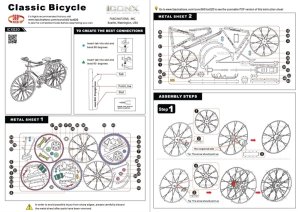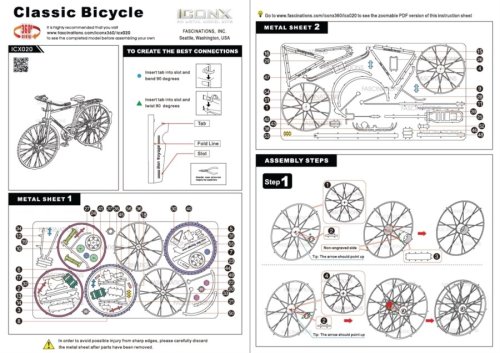 Jednotlivé díly vyjměte z kovových plátků, v případě potřeby použijte malé štípací nůžky (nejsou součástí). Dílky se spojují k sobě pomocí zámků tvořených úchytem (zobáčkem) a otvorem. Zobáček ohněte pomocí malých tenkých kleští (nejsou součástí) a postupně spojte všechny zámky až vznikne velmi realistický mistrovský kousek!