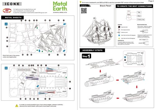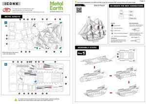 Jednotlivé díly vyjměte z kovových plátků, v případě potřeby použijte malé štípací nůžky (nejsou součástí). Dílky se spojují k sobě pomocí zámků tvořených úchytem (zobáčkem) a otvorem. Zobáček ohněte pomocí malých tenkých kleští (nejsou součástí) a postupně spojte všechny zámky až vznikne velmi realistický mistrovský kousek!