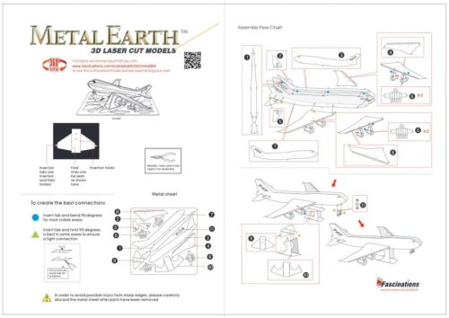 Jednotlivé díly vyjměte z kovových plátků, v případě potřeby použijte malé štípací nůžky (nejsou součástí). Dílky se spojují k sobě pomocí zámků tvořených úchytem (zobáčkem) a otvorem. Zobáček ohněte pomocí malých tenkých kleští (nejsou součástí) a postupně spojte všechny zámky až vznikne velmi realistický mistrovský kousek!