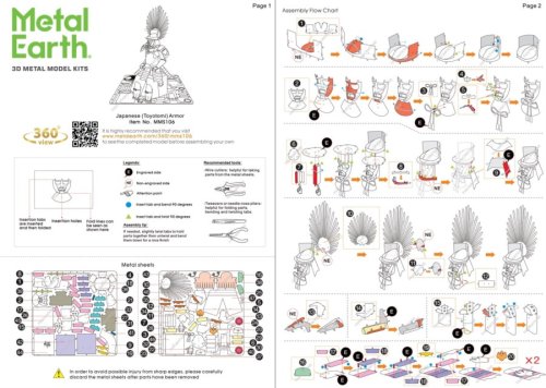 Jednotlivé díly vyjměte z kovových plátků, v případě potřeby použijte malé štípací nůžky (nejsou součástí). Dílky se spojují k sobě pomocí zámků tvořených úchytem (zobáčkem) a otvorem. Zobáček ohněte pomocí malých tenkých kleští (nejsou součástí) a postupně spojte všechny zámky až vznikne velmi realistický mistrovský kousek!