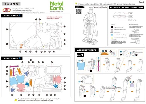 Jednotlivé díly vyjměte z kovových plátků, v případě potřeby použijte malé štípací nůžky (nejsou součástí). Dílky se spojují k sobě pomocí zámků tvořených úchytem (zobáčkem) a otvorem. Zobáček ohněte pomocí malých tenkých kleští (nejsou součástí) a postupně spojte všechny zámky až vznikne velmi realistický mistrovský kousek!