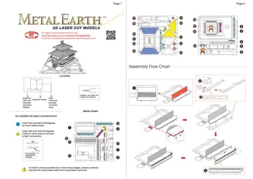 Jednotlivé díly vyjměte z kovových plátků, v případě potřeby použijte malé štípací nůžky (nejsou součástí). Dílky se spojují k sobě pomocí zámků tvořených úchytem (zobáčkem) a otvorem. Zobáček ohněte pomocí malých tenkých kleští (nejsou součástí) a postupně spojte všechny zámky až vznikne velmi realistický mistrovský kousek!