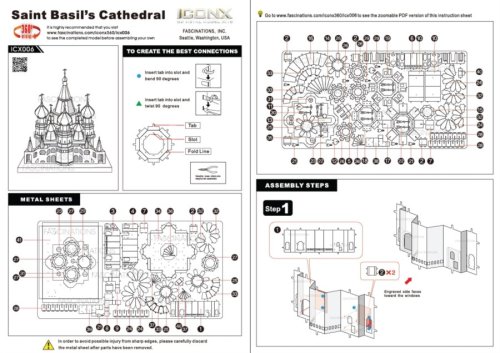 Jednotlivé díly vyjměte z kovových plátků, v případě potřeby použijte malé štípací nůžky (nejsou součástí). Dílky se spojují k sobě pomocí zámků tvořených úchytem (zobáčkem) a otvorem. Zobáček ohněte pomocí malých tenkých kleští (nejsou součástí) a postupně spojte všechny zámky až vznikne velmi realistický mistrovský kousek!
