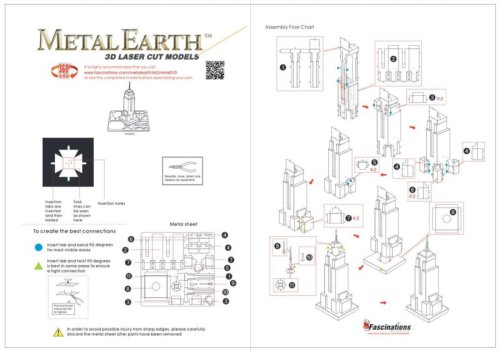 Jednotlivé díly vyjměte z kovových plátků, v případě potřeby použijte malé štípací nůžky (nejsou součástí). Dílky se spojují k sobě pomocí zámků tvořených úchytem (zobáčkem) a otvorem. Zobáček ohněte pomocí malých tenkých kleští (nejsou součástí) a postupně spojte všechny zámky až vznikne velmi realistický mistrovský kousek!