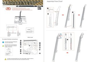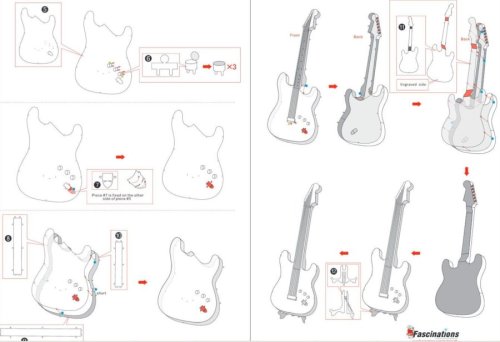 Jednotlivé díly vyjměte z kovových plátků, v případě potřeby použijte malé štípací nůžky (nejsou součástí). Dílky se spojují k sobě pomocí zámků tvořených úchytem (zobáčkem) a otvorem. Zobáček ohněte pomocí malých tenkých kleští (nejsou součástí) a postupně spojte všechny zámky až vznikne velmi realistický mistrovský kousek!