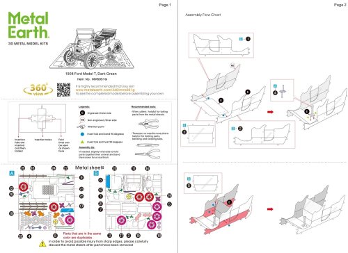 Vzrušující výzva, zážitek při skládání a oslnivý výsledek – to jsou modely METAL EARTH! Model sběratelského vozidla Ford model T 1908 pro všechny milovníky veteránů. Stavba 3D puzzle METAL EARTH vyžaduje trpělivost a šikovné ruce. Výsledek práce však plně vyváží vynaložené úsilí! Miniaturní repliky jsou obzvláště působivou a poutavou dekorací nejen doma, ale také v kanceláři či ve škole. Z čtvercových plátků oceli (11 x 11 cm) Vám pod rukama vyroste detailně propracovaný, fascinující model. Autentický vzhled 3D puzzle METAL EARTH je dosažen díky detailnímu laserovému gravírování . Balení obsahuje 2 ocelové plátky a návod na složení. Nářadí není součástí balení. PRACOVNÍ POSTUP: Jednotlivé díly vyjměte z kovových plátků, v případě potřeby použijte malé štípací nůžky (nejsou součástí). Dílky se spojují k sobě pomocí zámků tvořených úchytem (zobáčkem) a otvorem. Zobáček ohněte pomocí malých tenkých kleští (nejsou součástí) a postupně spojte všechny zámky až vznikne velmi realistický mistrovský kousek! Doporučený věk: od 14 let. Rozměr složeného puzzle cca 8,5 x 4,2 x 4,5 cm