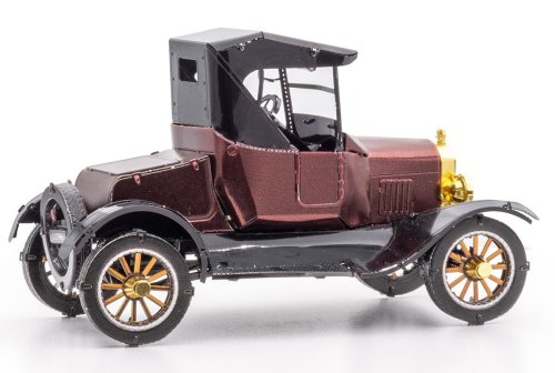 Vzrušující výzva, zážitek při skládání a oslnivý výsledek – to jsou modely METAL EARTH! Model sběratelského vozidla Ford model T Runabout 1925 pro všechny milovníky veteránů. Stavba 3D puzzle METAL EARTH vyžaduje trpělivost a šikovné ruce. Výsledek práce však plně vyváží vynaložené úsilí! Miniaturní repliky jsou obzvláště působivou a poutavou dekorací nejen doma, ale také v kanceláři či ve škole. Z čtvercových plátků oceli (11 x 11 cm) Vám pod rukama vyroste detailně propracovaný, fascinující model. Autentický vzhled 3D puzzle METAL EARTH je dosažen díky detailnímu laserovému gravírování . Balení obsahuje 2 velké ocelové plátky, 1 malý ocelový plátek a návod na složení. Nářadí není součástí balení. PRACOVNÍ POSTUP: Jednotlivé díly vyjměte z kovových plátků, v případě potřeby použijte malé štípací nůžky (nejsou součástí). Dílky se spojují k sobě pomocí zámků tvořených úchytem (zobáčkem) a otvorem. Zobáček ohněte pomocí malých tenkých kleští (nejsou součástí) a postupně spojte všechny zámky až vznikne velmi realistický mistrovský kousek! Doporučený věk: od 14 let. Rozměr složeného puzzle cca 7,8 x 4,5 x 4,8 cm