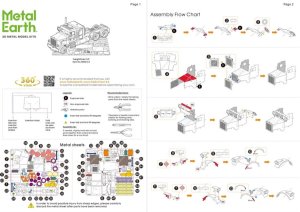 Jednotlivé díly vyjměte z kovových plátků, v případě potřeby použijte malé štípací nůžky (nejsou součástí). Dílky se spojují k sobě pomocí zámků tvořených úchytem (zobáčkem) a otvorem. Zobáček ohněte pomocí malých tenkých kleští (nejsou součástí) a postupně spojte všechny zámky až vznikne velmi realistický mistrovský kousek!