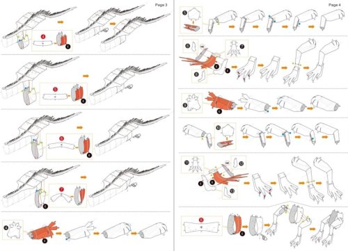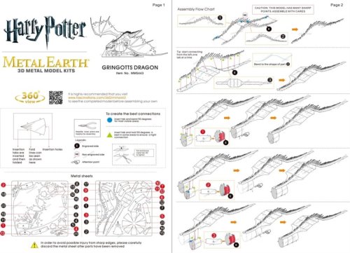 Jednotlivé díly vyjměte z kovových plátků, v případě potřeby použijte malé štípací nůžky (nejsou součástí). Dílky se spojují k sobě pomocí zámků tvořených úchytem (zobáčkem) a otvorem. Zobáček ohněte pomocí malých tenkých kleští (nejsou součástí) a postupně spojte všechny zámky až vznikne velmi realistický mistrovský kousek!
