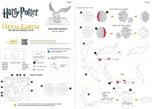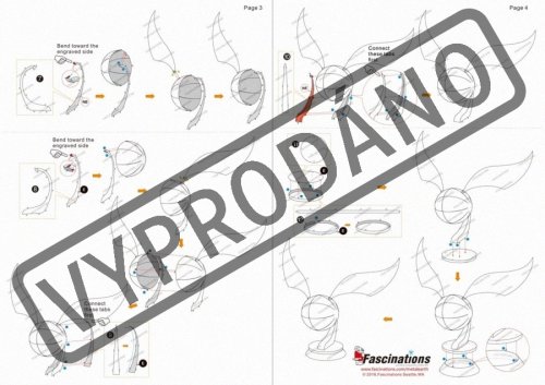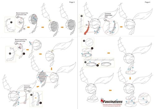 Jednotlivé díly vyjměte z kovových plátků, v případě potřeby použijte malé štípací nůžky (nejsou součástí). Dílky se spojují k sobě pomocí zámků tvořených úchytem (zobáčkem) a otvorem. Zobáček ohněte pomocí malých tenkých kleští (nejsou součástí) a postupně spojte všechny zámky až vznikne velmi realistický mistrovský kousek!