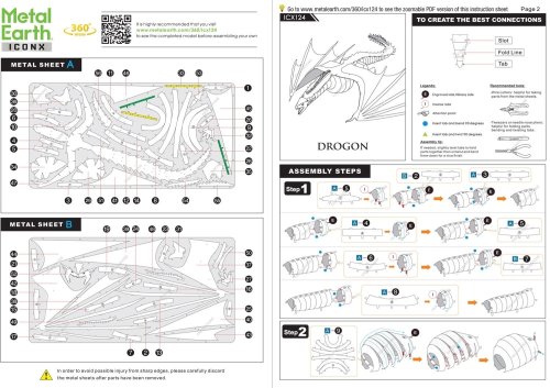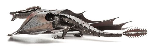 Vzrušující výzva, zážitek při skládání a oslnivý výsledek – to jsou modely METAL EARTH! Model z prémiové řady ICONX Game of Thrones Vás okouzlí ještě dokonalejším zpracováním detailů! Stavba 3D puzzle METAL EARTH ICONX vyžaduje trpělivost a šikovné ruce. Výsledek práce však plně vyváží vynaložené úsilí! Miniaturní repliky jsou obzvláště působivou a poutavou dekorací nejen doma, ale také v kanceláři či ve škole. Z obdélníkových plátků oceli (21 x 11 cm) s částmi světových monumentů, slavných dopravních prostředků, hudebních nástrojů či zvířat Vám pod rukama vyrostou detailně propracované, fascinující modely. Autentický vzhled 3D puzzle METAL EARTH ICONX je dosažen díky detailnímu laserovému gravírování . Balení obsahuje 2 ocelové plátky a návod na složení. Nářadí není součástí balení. PRACOVNÍ POSTUP: Jednotlivé díly vyjměte z kovových plátků, v případě potřeby použijte malé štípací nůžky (nejsou součástí). Dílky se spojují k sobě pomocí zámků tvořených úchytem (zobáčkem) a otvorem. Zobáček ohněte pomocí malých tenkých kleští (nejsou součástí) a postupně spojte všechny zámky až vznikne velmi realistický mistrovský kousek! Doporučený věk: od 14 let. Rozměr složeného puzzle cca 21 x 19 x 4 cm