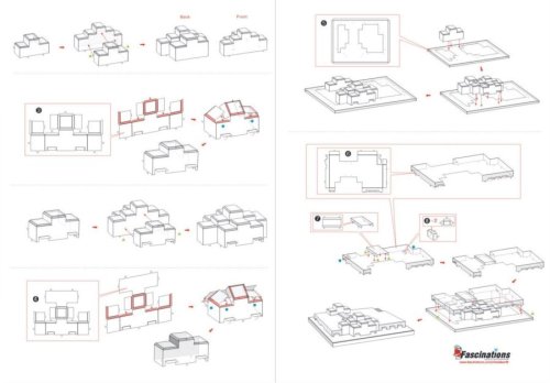 Jednotlivé díly vyjměte z kovových plátků, v případě potřeby použijte malé štípací nůžky (nejsou součástí). Dílky se spojují k sobě pomocí zámků tvořených úchytem (zobáčkem) a otvorem. Zobáček ohněte pomocí malých tenkých kleští (nejsou součástí) a postupně spojte všechny zámky až vznikne velmi realistický mistrovský kousek!