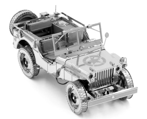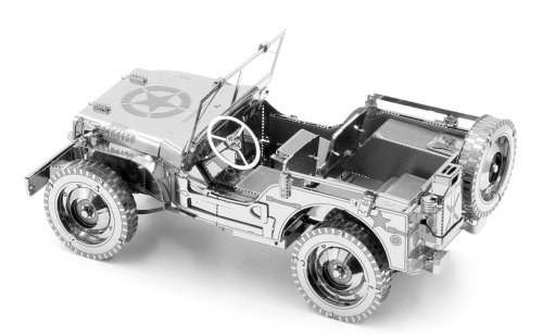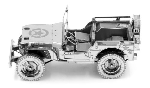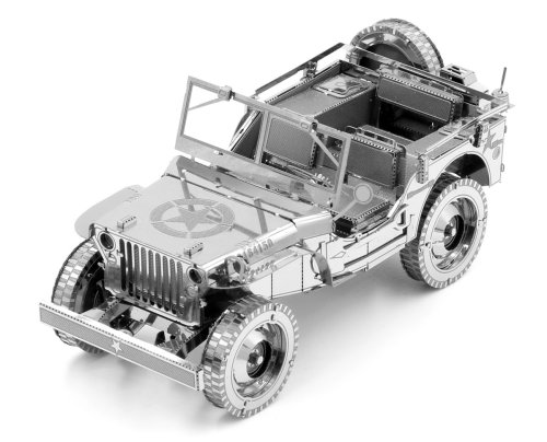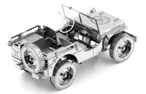 Vzrušující výzva, zážitek při skládání a oslnivý výsledek – to jsou modely METAL EARTH! Model z prémiové řady ICONX v exkluzivním dárkovém balení Vás okouzlí ještě dokonalejším zpracováním detailů! Stavba 3D puzzle METAL EARTH ICONX vyžaduje trpělivost a šikovné ruce. Výsledek práce však plně vyváží vynaložené úsilí! Miniaturní repliky jsou obzvláště působivou a poutavou dekorací nejen doma, ale také v kanceláři či ve škole. Z obdélníkových plátků oceli (21 x 11 cm) s částmi světových monumentů, slavných dopravních prostředků, hudebních nástrojů či zvířat Vám pod rukama vyrostou detailně propracované, fascinující modely. Autentický vzhled 3D puzzle METAL EARTH ICONX je dosažen díky detailnímu laserovému gravírování . Balení obsahuje 2 ocelové plátky, pinzetu a návod na složení. Nářadí není součástí balení. PRACOVNÍ POSTUP: Jednotlivé díly vyjměte z kovových plátků, v případě potřeby použijte malé štípací nůžky (nejsou součástí). Dílky se spojují k sobě pomocí zámků tvořených úchytem (zobáčkem) a otvorem. Zobáček ohněte pomocí malých tenkých kleští (nejsou součástí) a postupně spojte všechny zámky až vznikne velmi realistický mistrovský kousek! Doporučený věk: od 14 let. Jeep Willys MB byl americký lehký užitkový vůz, který vznikl v době druhé světové války. Jeho název jeep (česky: džíp) se stal synonymem pro terénní automobil na celém světě. Tento legendární vůz byl snad nejznámějším vozidlem druhé světové války. Více na Wikipedii Rozměr složeného puzzle cca 9,7 x 3,8 x 4 cm