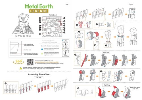 Jednotlivé díly vyjměte z kovových plátků, v případě potřeby použijte malé štípací nůžky (nejsou součástí). Dílky se spojují k sobě pomocí zámků tvořených úchytem (zobáčkem) a otvorem. Zobáček ohněte pomocí malých tenkých kleští (nejsou součástí) a postupně spojte všechny zámky až vznikne velmi realistický mistrovský kousek!