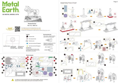 Jednotlivé díly vyjměte z kovových plátků, v případě potřeby použijte malé štípací nůžky (nejsou součástí). Dílky se spojují k sobě pomocí zámků tvořených úchytem (zobáčkem) a otvorem. Zobáček ohněte pomocí malých tenkých kleští (nejsou součástí) a postupně spojte všechny zámky až vznikne velmi realistický mistrovský kousek!
