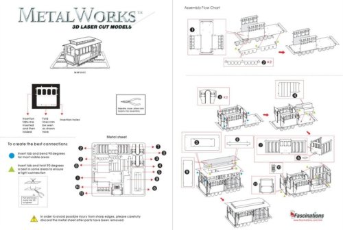 Jednotlivé díly vyjměte z kovových plátků, v případě potřeby použijte malé štípací nůžky (nejsou součástí). Dílky se spojují k sobě pomocí zámků tvořených úchytem (zobáčkem) a otvorem. Zobáček ohněte pomocí malých tenkých kleští (nejsou součástí) a postupně spojte všechny zámky až vznikne velmi realistický mistrovský kousek!