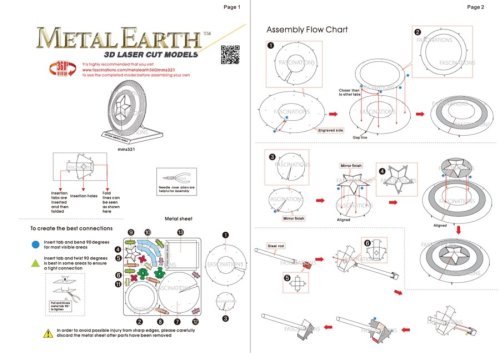 Jednotlivé díly vyjměte z kovových plátků, v případě potřeby použijte malé štípací nůžky (nejsou součástí). Dílky se spojují k sobě pomocí zámků tvořených úchytem (zobáčkem) a otvorem. Zobáček ohněte pomocí malých tenkých kleští (nejsou součástí) a postupně spojte všechny zámky až vznikne velmi realistický mistrovský kousek!