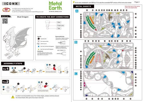 Jednotlivé díly vyjměte z kovových plátků, v případě potřeby použijte malé štípací nůžky (nejsou součástí). Dílky se spojují k sobě pomocí zámků tvořených úchytem (zobáčkem) a otvorem. Zobáček ohněte pomocí malých tenkých kleští (nejsou součástí) a postupně spojte všechny zámky až vznikne velmi realistický mistrovský kousek!