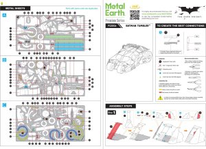Sada pro vytvoření fascinujícího kovového 3D modelu . Stavba puzzle METAL EARTH vyžaduje trpělivost a šikovné ruce. Výsledek práce však plně vyváží vynaložené úsilí. Miniaturní repliky jsou působivou a poutavou dekorací. Z čtvercových plátků oceli Vám pod rukama vyrostou detailně propracované, fascinující modely. Autentický vzhled 3D puzzle METAL EARTH je dosažen díky detailnímu laserovému gravírování . Nářadí není součástí balení. PRACOVNÍ POSTUP: Jednotlivé díly vyjměte z kovových plátků, v případě potřeby použijte malé štípací nůžky (nejsou součástí). Dílky se spojují k sobě pomocí zámků tvořených úchytem (zobáčkem) a otvorem. Zobáček ohněte pomocí malých tenkých kleští (nejsou součástí) a postupně spojte všechny zámky až vznikne velmi realistický mistrovský kousek!