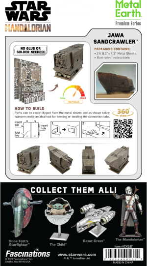 Sada pro vytvoření fascinujícího kovového 3D modelu . Stavba puzzle METAL EARTH vyžaduje trpělivost a šikovné ruce. Výsledek práce však plně vyváží vynaložené úsilí. Miniaturní repliky jsou působivou a poutavou dekorací. Z čtvercových plátků oceli Vám pod rukama vyrostou detailně propracované, fascinující modely. Autentický vzhled 3D puzzle METAL EARTH je dosažen díky detailnímu laserovému gravírování . Nářadí není součástí balení. PRACOVNÍ POSTUP: Jednotlivé díly vyjměte z kovových plátků, v případě potřeby použijte malé štípací nůžky (nejsou součástí). Dílky se spojují k sobě pomocí zámků tvořených úchytem (zobáčkem) a otvorem. Zobáček ohněte pomocí malých tenkých kleští (nejsou součástí) a postupně spojte všechny zámky až vznikne velmi realistický mistrovský kousek!
